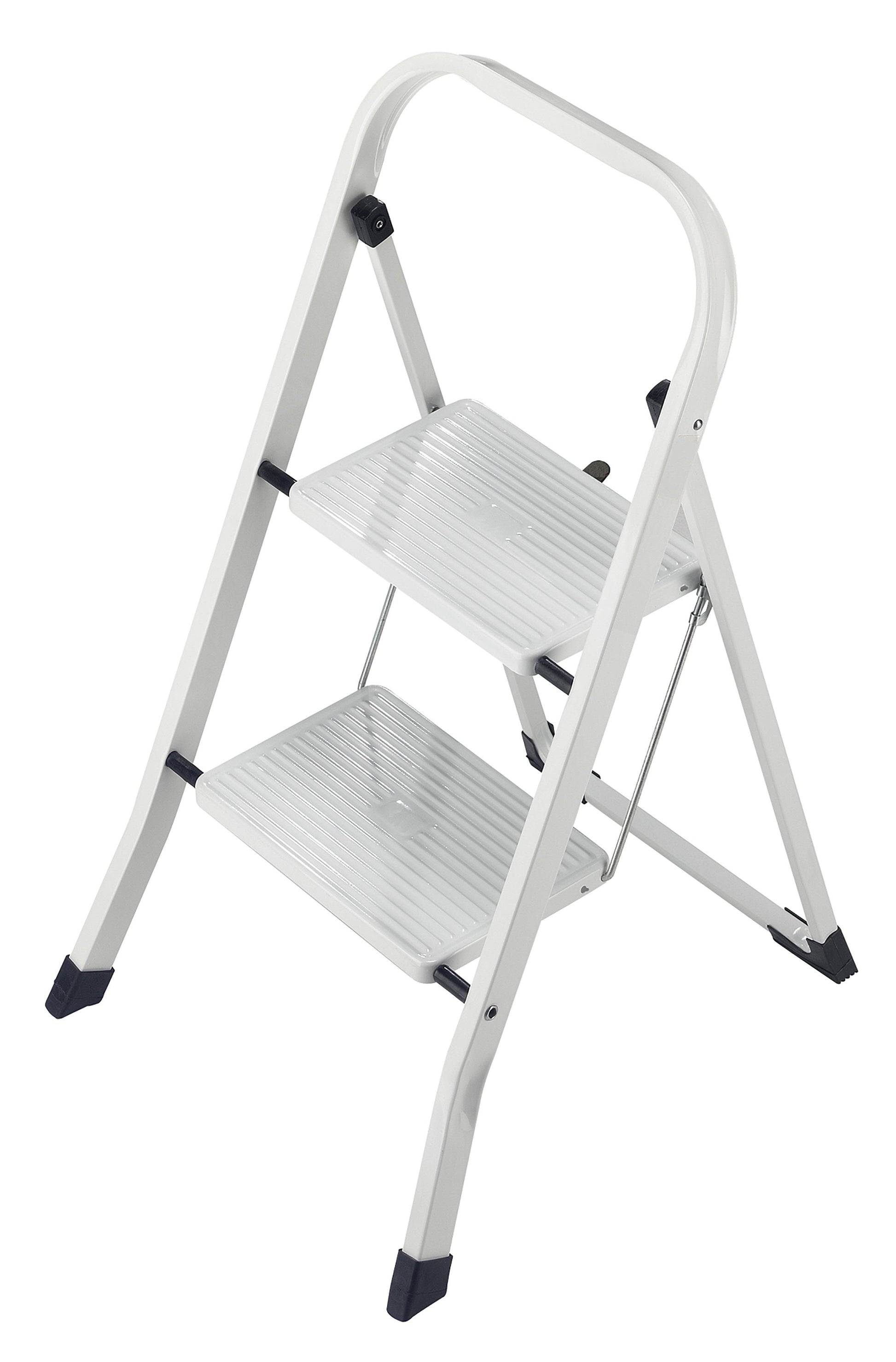 Peldaños grandes de acero. Largueros de tubo de acero cuadrado para un agarre fácil y mayor seguridad. Bloqueo de seguridad de las juntas. Tacos estriados antideslizantes con superficie total de apoyo. Plegada ocupa sólo 5 cm de ancho.Resiste hasta 150 kg de carga.