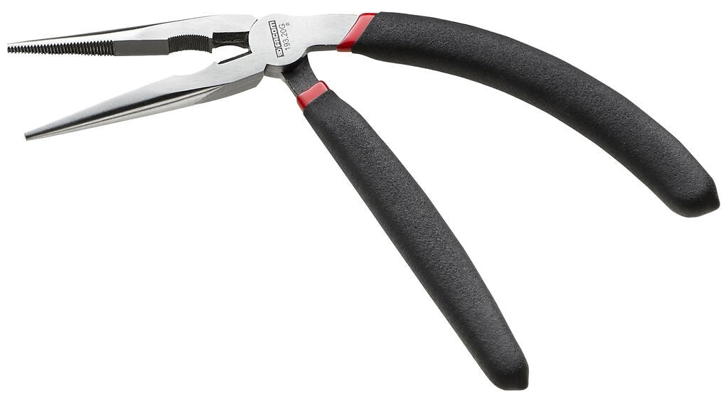 • Acodada 45°, puntas semirredondas para trabajo en las zonas difíciles de acceso. • El ángulo de la pinza permite una correcta visibilidad de la pieza trabajada y evita los movimientos inconfortables de la empuñadura. • Alicate universal 3 en 1: aprieta tubo, agarre, de corte. • Puntas largas y finas para un mejor acceso. • Empuñadura ergonómica que facilita el agarre. • Presentación: pulida, vaina en PVC.