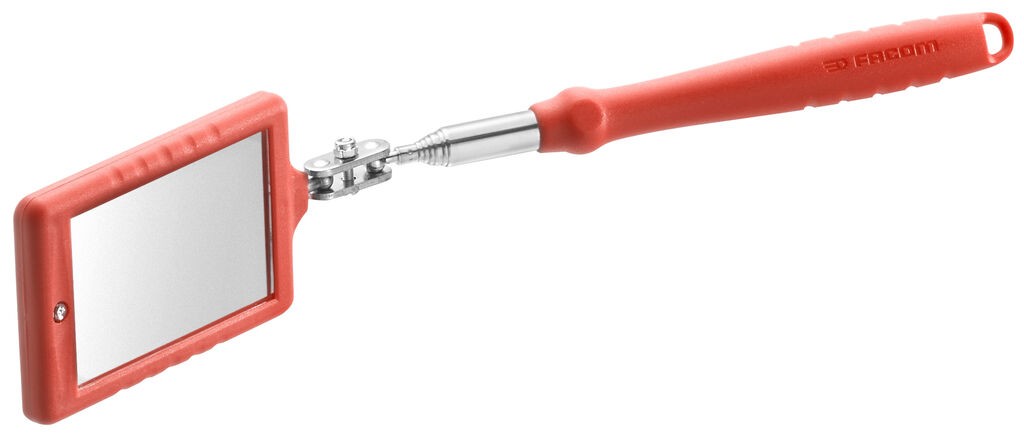 • Espejo retroiluminado por LED para una mejor visibilidad en las zonas oscuras. • Espejo en vidrio resistente a los arañazos. • Pieza plástica moldeado alrededor del cristal para una mejor protección de las piezas trabajadas y duración de vida del espejo. • Articulación fácil regulable e incluso bloqueable por tornillo. • Mango plástico ergonómico y resistente a los disolventes: Skydroll, gasóleo… • Longitud máx. 850 mm.
