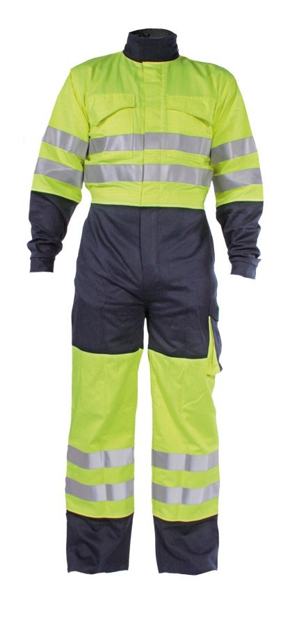 DescripciónBuzo de gran confort y diseño para soldadura o afines fabricado en Algodón 78% con tratamiento FR, fibra de poliéster 20% y fibra antiestática 2%. Dos bolsillos frontales con tapeta apresillada y cierre por velcro. Tres bolsillos posteriores con tapetas apresilladas y cierre por velcro. Dos bolsillos franceses. Elástico posterior en cintura. Cremallera FR. Cuello alto para mayor protección de radiaciones por soldadura. Bandas reflectantes en mangas, pecho y perneras. Alta visibilidad clase 3. Gramaje 290 gr/m2. Color: azul marino.AplicacionesEsta prenda está concebida para todo tipo de actividad con riesgo por proyecciones de metal fundido derivadas de trabajos de soldadura, oxicorte, etc, en lugares donde exista un alto riesgo de incendio y/o explosión derivado de las actividades donde se produzcan proyecciones de metal fundido en recintos donde se almacenen gases no visibles como en refinerías, industria química, petroquímicas, minería, gasolineras, plantas de producción y manipulación de explosivos, industria pirotécnica, etc.EspecificacionesColor: AzulMateriales: Fibra algodón FR 78%, poliéster 20% y antiestática 2%.Normativa: EN 340, EN 11612, EN11611, EN 1149-5, EN 20471, EN 13034 y EN 61482-1-2MarcajeComportamiento a la llama: A1 Calor convectivo: B1Calor radiante: C1Pequeñas salpicaduras de aluminio fundido: -Pequeñas salpicaduras de hierro fundido: -Calor por contacto: F1AdvertenciasAlmacenar en lugar seco, fresco y alejado de fuentes de luz y calor