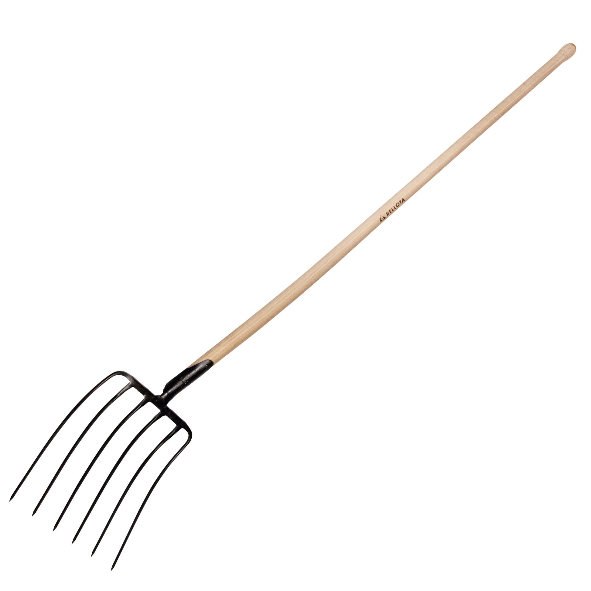Horca forjada de 6 púas para recoger heno y estiércol con mango largo curvo sin barnizar / 9016MCSB