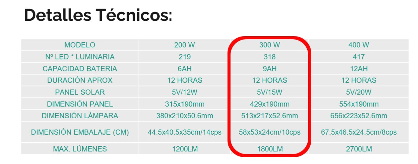 - Potencia: 300W.
