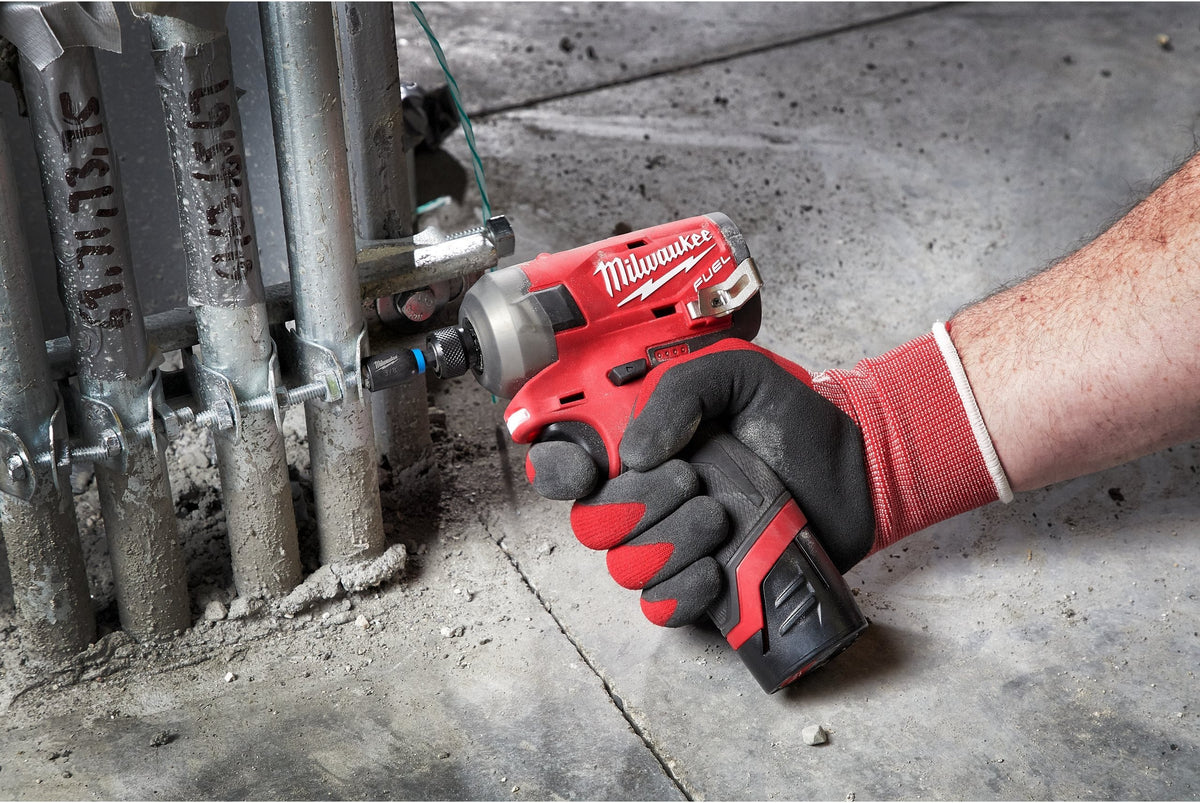 Atornillador de Impacto Silencioso SURGE™ M12 FQID FUEL™ Milwaukee 1/4" Hex con 2 Baterías 2.0Ah, Cargador y Maletín M12 FQID-202X