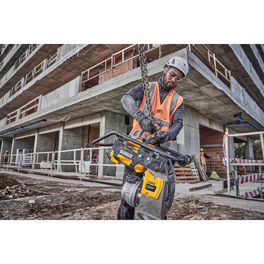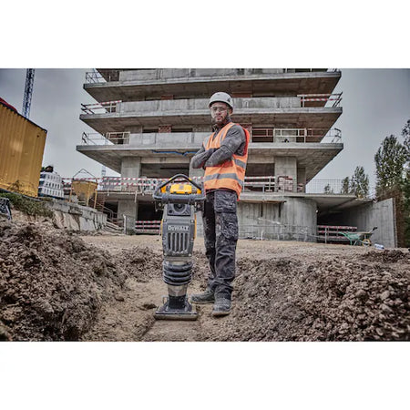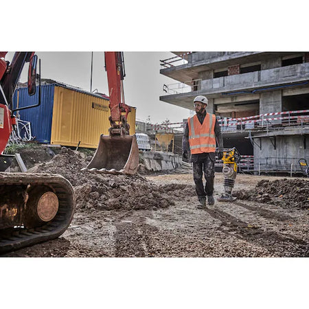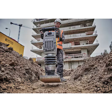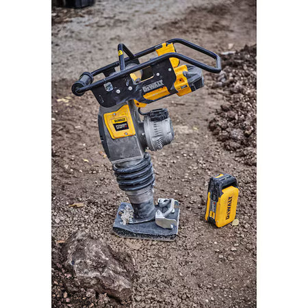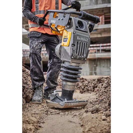 TOME EL CONTROL con DEWALT POWERSHIFT. El sistema para equipos sin cable diseñado para un rendimiento y una autonomía épicos. No espere para arrancar, ni pare para repostar, ni se vea limitado por la gasolina ni un segundo más. Este apisonador a batería ofrece un rendimiento equivalente al de la gasolina con cero emisiones. El motor sellado sin escobillas proporciona una velocidad de avance líder en su clase de 15 m/min, mientras que los controles de fácil acceso y el selector de velocidad doble ofrecen un control mejorado. El sistema de transmisión directa y el punto de inspección y llenado de aceite de fácil uso ofrecen unos requisitos de mantenimiento mínimos. El gancho integrado para elevación y grúa y el kit de ruedas opcional ofrecen una mayor portabilidad en los lugares de trabajo más difíciles. VELOCIDAD DE COMPACTACIÓN EQUIVALENTE A LA DEL PETRÓLEO.