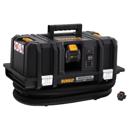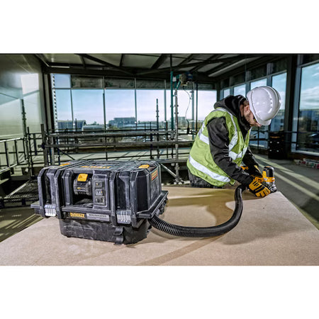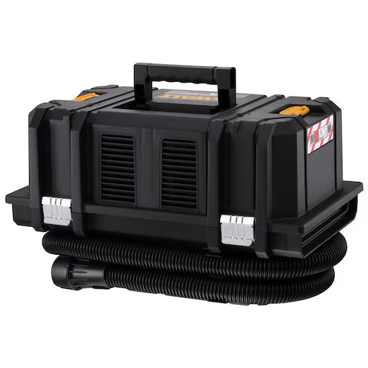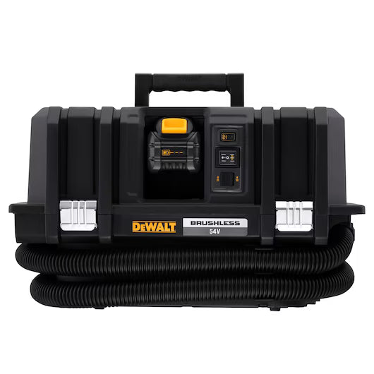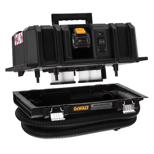 ASPIRADOR SÓLIDOS Y LÍQUIDOS XR FLEXVOLT 54V Clase M, sistema de limpieza de doble filtro, manguera de 2.5m x 32mm, capacidad 15L, Peso 9Kg. EQUIPO ESTÁNDAR: dos baterías XR FLEXVOLT 54V/18V 6.0Ah, cargador, manguera 2.5m x 32mm, Adaptador AirLock 35mm, adaptador escalonado de goma AirLock, bolsa de tela para aspirador. Motor sin escobillas que proporciona una potencia equivalente de 2.000W y una protección contra sobrecargas para un mayor rendimiento La activación remota del aspirador se realiza mediante un mando para poderlo encender a distancia, facilitar su uso y ahorrar tiempo Alarma sonora de alerta al usuario si se produce una caída en el rendimiento Certificado clase M, escape de polvo 0.1% a través del filtro, adecuado para su uso en obras Configuración compatible con el sistema TSTAK para una mayor facilidad de uso, mayor movilidad y ahorro de tiempo Limpieza de doble filtro automático cada 30 segundos, reduciendo los problemas de obstrucción del filtro y proporcionando un flujo de aire constante Absorción de líquidos y sólidos para una máxima limpieza e incluye un almacenamiento para la manguera de 2.5m que proporciona una mayor facilidad de uso Resistente al polvo y agua para una máxima protección en condiciones extremas, proporcionando mayor durabilidad Cierres metálicos y resistentes para un acceso rápido y fácil al tanque y a los filtros Plástico de Polipropileno reforzado de 4mm de grosor para una alta resistencia a caídas, proporcionando mayor durabilidad