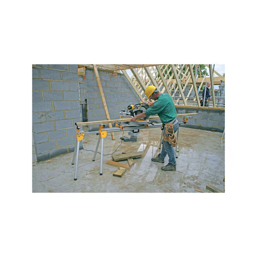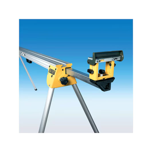 Banco de trabajo de alto rendimiento para Ingletadoras Barra soporte de piezas de 1.7m con capacidad de extenderse hasta 3.83 metros. La barra soporte puede aguantar hasta 227kg de peso. Las piezas de soporte pueden convertirse en topes de profundidad para cortar piezas a la misma medida. Patas integradas para un rápido montaje del banco y asa de transporte integrada que facilidad su transporte. Soporta todas las ingletadoras de DEWALT Gracias a su fabricación con aluminio ofrece una gran ligereza y facilidad de transporte Barra soporte de piezas de 1.7m con capacidad de extenderse hasta 3.9 metro La barra soporte puede aguantar hasta 182kg de peso, ofreciendo una máxima flexibilidad y capacidad Barra soporte de piezas de 1.7m con capacidad de extenderse hasta 3.83 metros Las piezas de soporte pueden convertirse en topes de profundidad para cortar piezas a la misma medida Patas integradas para un rápido montaje del banco