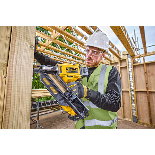 Clavadora de Estructuras sin escobillas XR 18V para clavos de 50 - 90mm con disparo Secuecial o Continuo Motor sin escobillas de 18V para una mayor durabilidad, eficiencia y potencia capaz de clavar clavos de mango anular de 90 mm a ras en madera de densidad media Mayor velocidad para una aplicación de clavos más rápida Compatible con la mayoría de clavos de cinta de papel del mercado y optimizado para clavos DNPT (cinta de papel) y DNW (alambre soldado). Se suministra con un gancho reversible para el cinturón y con un cómodo gancho para viga Control preciso de la profundidad gracias a la regulación ampliada de las ruedas Diseño optimizado de la puntera para disparo en ángulo Nuevo cargador de magnesio con sistema de carga mejorado El cargador prolongado se vende como accesorio independiente para un funcionamiento más prolongado antes de la recarga
