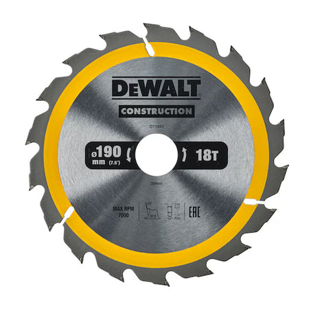 Hoja Sierra Circular Portátil 190mm 18D ATB Construcción Dewalt DT1943-QZ