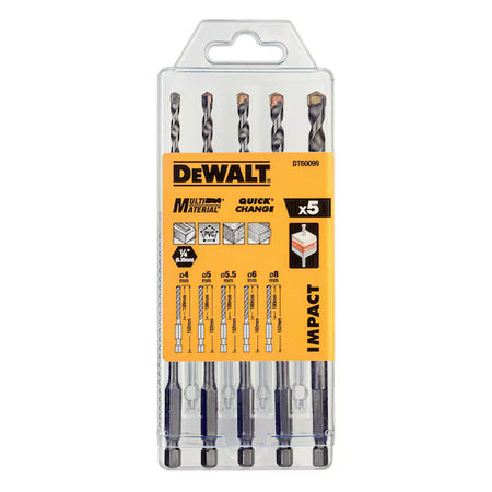 Juego 5 Brocas Multi-Material IMPACT (4, 5, 5.5, 6, 8mm) Dewalt DT60099-QZ