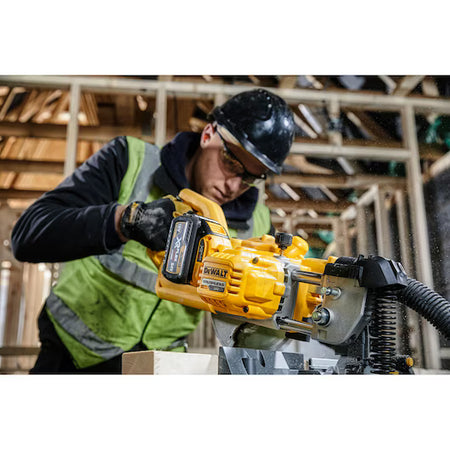 INGLETADORA TELESCÓPICA SIN ESCOBILLAS XR FLEXVOLT 54V Ø216mm + XPS Con innovadora línea indicadora del corte con sombra XPS. Incluye base y guía, función de bloqueo de la cabeza y palanca de fijación rápida. Desplazamiento a la izquierda de la guarda con escala de medición. Dispone de ángulos de corte prefijados a 15°, 22.5°, 30° y 45°. Velocidad de la hoja 6.300 rpm, diámetro de la hoja 216mm, diámetro interior 30mm, capacidad de biselado 48º, capacidad de inglete (dcha/izqda) 50/50º, capacidad de corte a 90º/90º (PxA) 270x62mm, máx. profundidad de corte (sierras) 80mm, peso 14Kg. EQUIPO ESTÁNDAR: dos baterías XR FLEXVOLT 54V/18V 6.0Ah Li-Ion, cargador, Hoja de sierra con dientes TCT, llave hexagonal, mordaza. Diseño clásico de telescópico con actualizaciones para el usuario moderno La innovadora línea indicadora del corte con sombra XPS proporciona la alineación exacta y rápida de la lámina mientras que ilumina la pieza del trabajo para aumentar la productividad Eficiencia mejorada para la conexión de un aspirador Diseño interno del rail telescópico enorme capacidad de corte y fácil transporte Nuevo sistema de bloqueo, permite fijar el cabezal para realizar trabajos de corte y facilita su transporte La base y la guía han sido fresadas para satisfacer las necesidades de los trabajos más usuales Desplazamiento a la izquierda de la guarda con la escala de medición para el apoyo material y mejor gestión Extracción de polvo diseñado específicamente para satisfacer las necesidades de los usuarios profesionales en aplicaciones pesadas, la protección de las partículas de polvo transportadas por el aire minimiza los riesgos de salud durante largos períodos de Dispone de ángulos de corte prefijados a 15°, 22.5°, 30° y 45°. También incluye una palanca de fijación rápida hasta los 50° Motor sin escobillas de 54V para un gran rendimiento en todas las aplicaciones