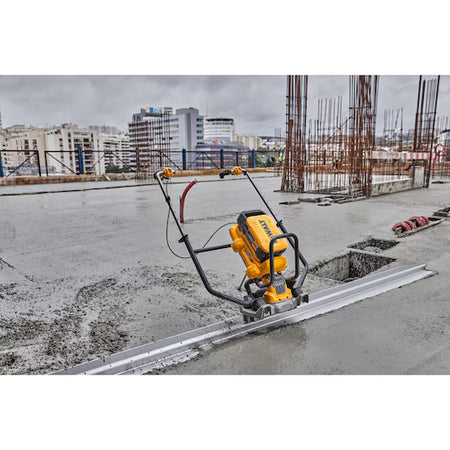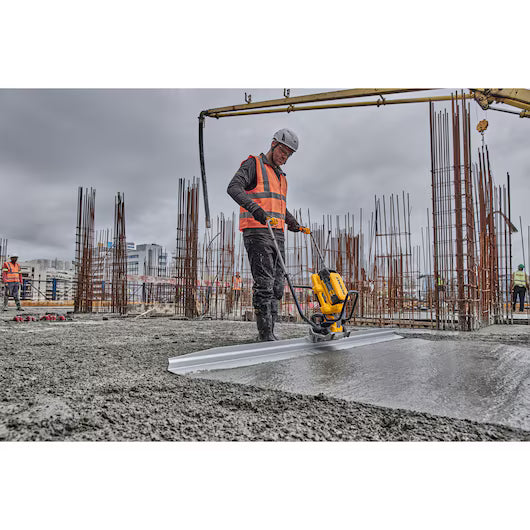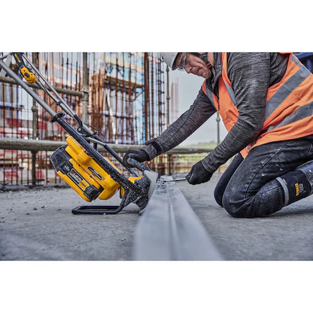 TOME EL CONTROL con DEWALT POWERSHIFT™. El sistema para equipos sin cable diseñado para un rendimiento y una autonomía épicos. No espere para arrancar, ni pare para repostar, ni se vea limitado por la gasolina ni un segundo más. Esta regla a batería ofrece un rendimiento equivalente al de la gasolina con la potencia necesaria para romper una junta en frío y cero emisiones. El accesorio de una llave para vigas es compatible con todas las vigas en L y vigas de caja comunes (se venden por separado). El ajuste de altura sin herramientas y las empuñaduras totalmente ajustables ofrecen una mayor ergonomía y el gatillo de velocidad variable con bloqueo permite al usuario adaptarse al estado del hormigón. El soporte incorporado permite guardar la regla en la obra sin exponer los controles al hormigón húmedo. AJUSTE DE ALTURA SIN HERRAMIENTAS CON ESCALA DE ALINEACIÓN - Almacenamiento integrado de llaves HEX para todos los ajustes con herramientas. MONTAJE DE LA REGLA - sólo mediante el uso de una llave suministrada. REGLA MÁXIMA OPERABLE - longitud de 5m. AJUSTES COMPLETOS DE LA MANIJA - Dentro-fuera / arriba-abajo / izquierda-derecha. MANGO DE TRANSPORTE Y ZONA DE SUJECIÓN - para un fácil manejo mediante posiciones de sujeción definidas, incluso con la viga montada. Amortiguador en forma de V - para reducir significativamente las vibraciones y prolongar los tiempos de disparo. DISPARADOR DE VELOCIDAD VARIABLE - con función de bloqueo. EXTREMA ESTABILIDAD DEL MARCO Y LOS SOPORTES - para evitar que se flexione o se rompa. SOPORTE DE PATADA - para evitar que la herramienta se caiga en el hormigón fresco.