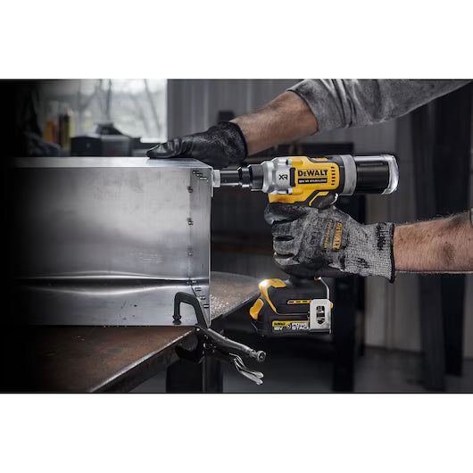 Remachadora XR 18V sin escobillas ofrece un remachado rápido y sencillo Sujeta todos los remaches de 4.8 mm, 6.0 mm y 6.4 mm para ofrecer una mayor gama de aplicaciones. Fuerza de tracción de 20.000 N y la carrera de 25 mm permitirán completar la aplicación rápida, proporcionando un mayor rendimiento Cambio de boquilla sin herramientas para mayor comodidad Colector de Boquillas en la herramienta Ligera y ergonómica para una máximo control y seguridad