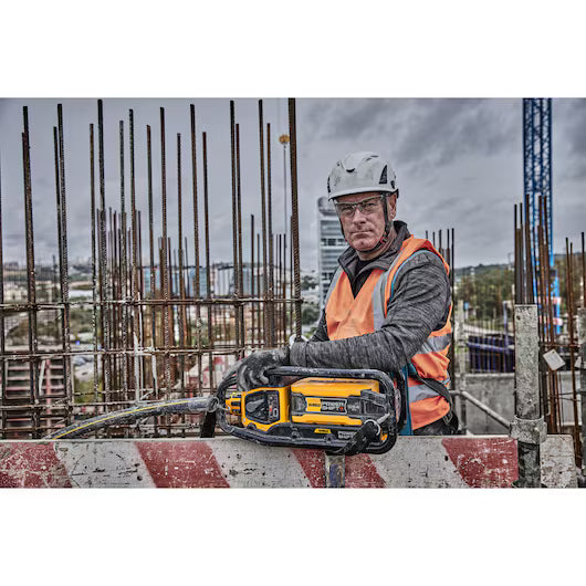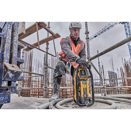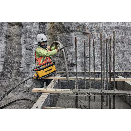 TOME EL CONTROL con DEWALT POWERSHIFT. El sistema para equipos sin cable diseñado para un rendimiento y una autonomía épicos. No espere para arrancar, ni pare para repostar, ni se vea limitado por la gasolina ni un segundo más. Este vibrador a pilas ofrece un rendimiento equivalente al de la gasolina con cero emisiones. La manguera autoexpulsable, que se coloca con una sola mano, no necesita herramientas para facilitar su uso con guantes y ofrece protección contra la entrada de suciedad. Las mangueras de alta frecuencia (se venden por separado) están diseñadas con el motor en el cabezal para reducir el diámetro, lo que también contribuye a aumentar el tiempo de funcionamiento, reducir las vibraciones, mejorar la durabilidad y evitar el mantenimiento. El control inalámbrico de la herramienta permite conectar el vibrador a un mando a distancia para facilitar su uso con mangueras más largas. La jaula antivuelco integrada ofrece varias posiciones de agarre y ayuda a proteger la batería para una mayor durabilidad en los trabajos más duros.