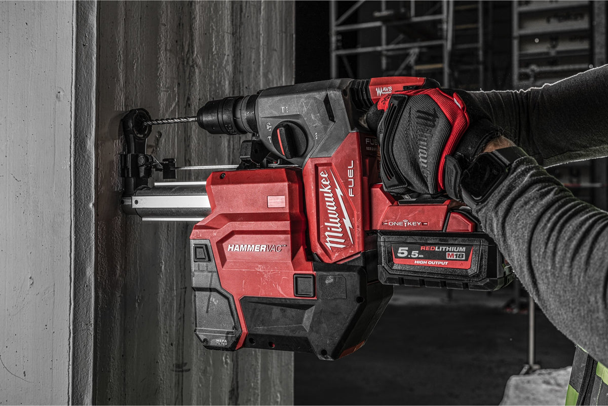 Martillo Combinado SDS-Plus 26mm M18 FUEL ONE-KEY con FIXTEC Extractor Polvo 2 Baterías 5.5Ah y Cargador Milwaukee M18 ONEFHXDEL-552C