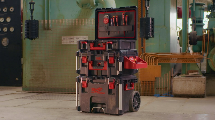 - Compatible con las gavetas y gavetas magnéticas PACKOUT™ magnéticas y juegos de brocas SHOCKWAVE™