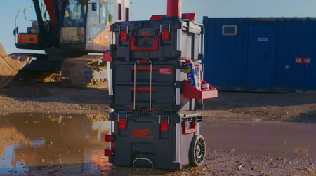 - Se fija a las protecciones laterales de las cajas de herramientas PACKOUT™ en cualquier dirección