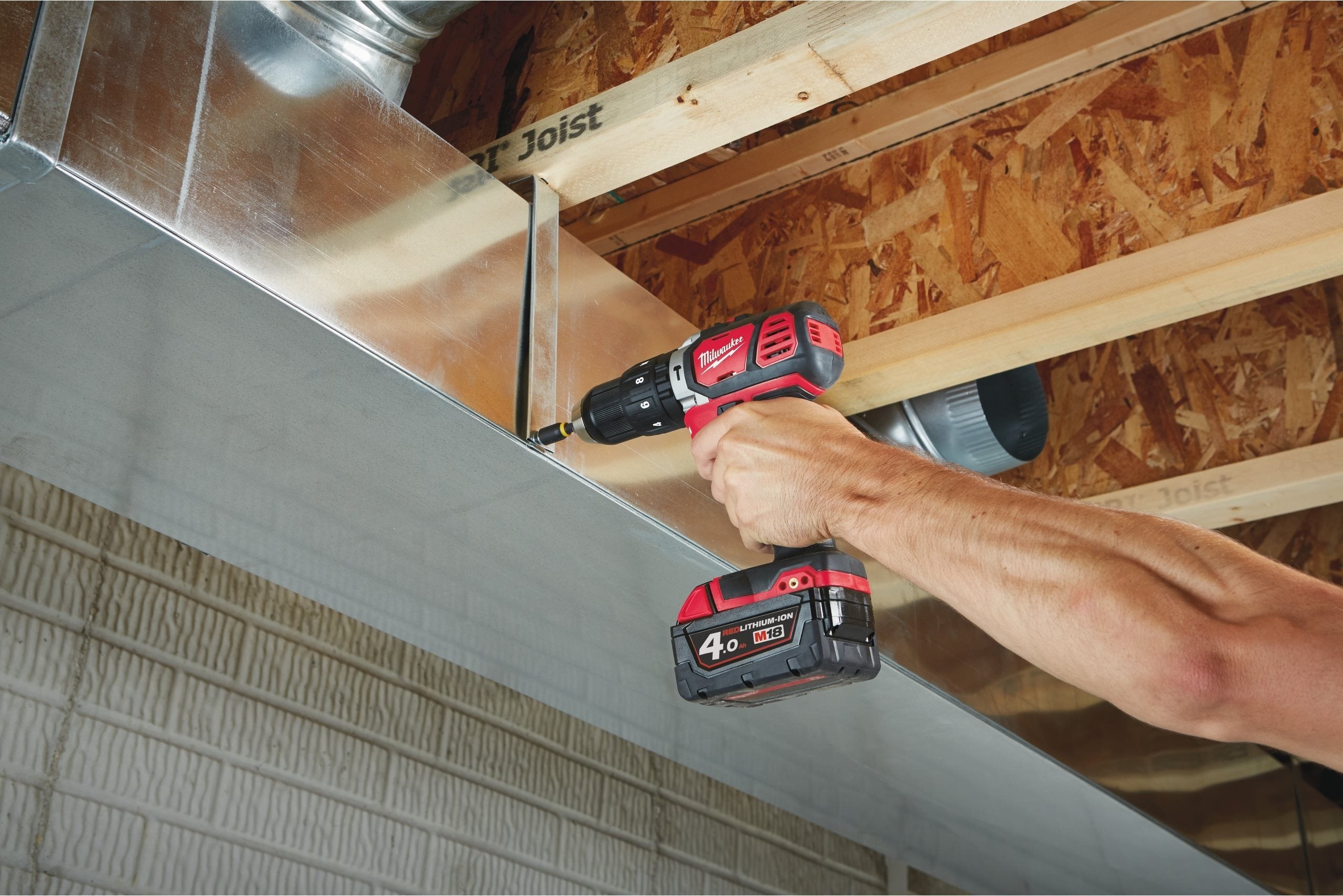 - Taladro percutor compacto de solo 198mm de longitud, lo que le convierte en el taladro ideal para trabajar en espacios reducidos