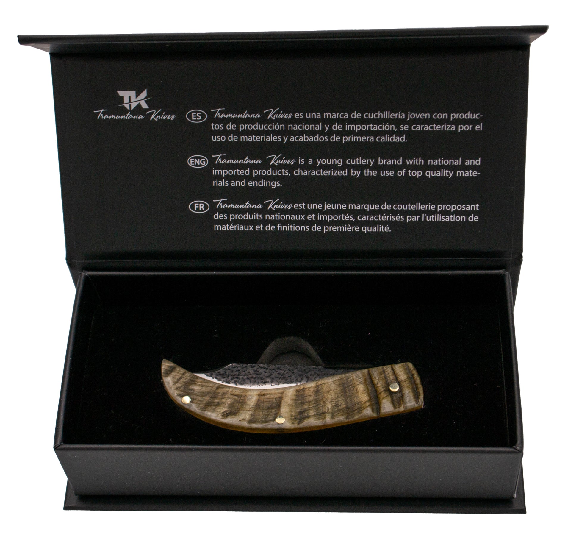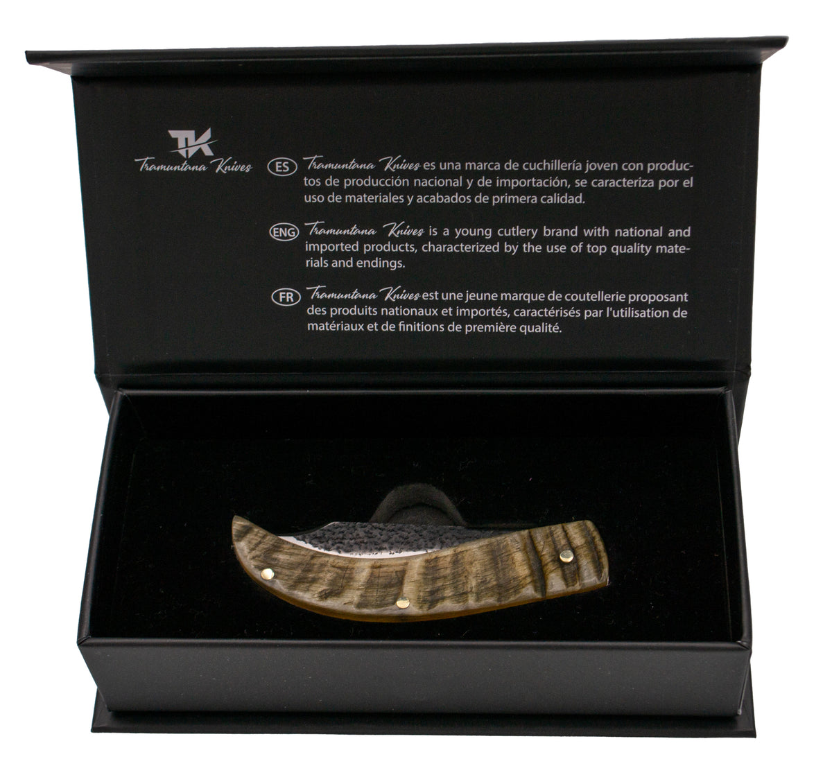 Navaja Rústica Tramuntana Knives N91C con mango de cuerno de carnero.