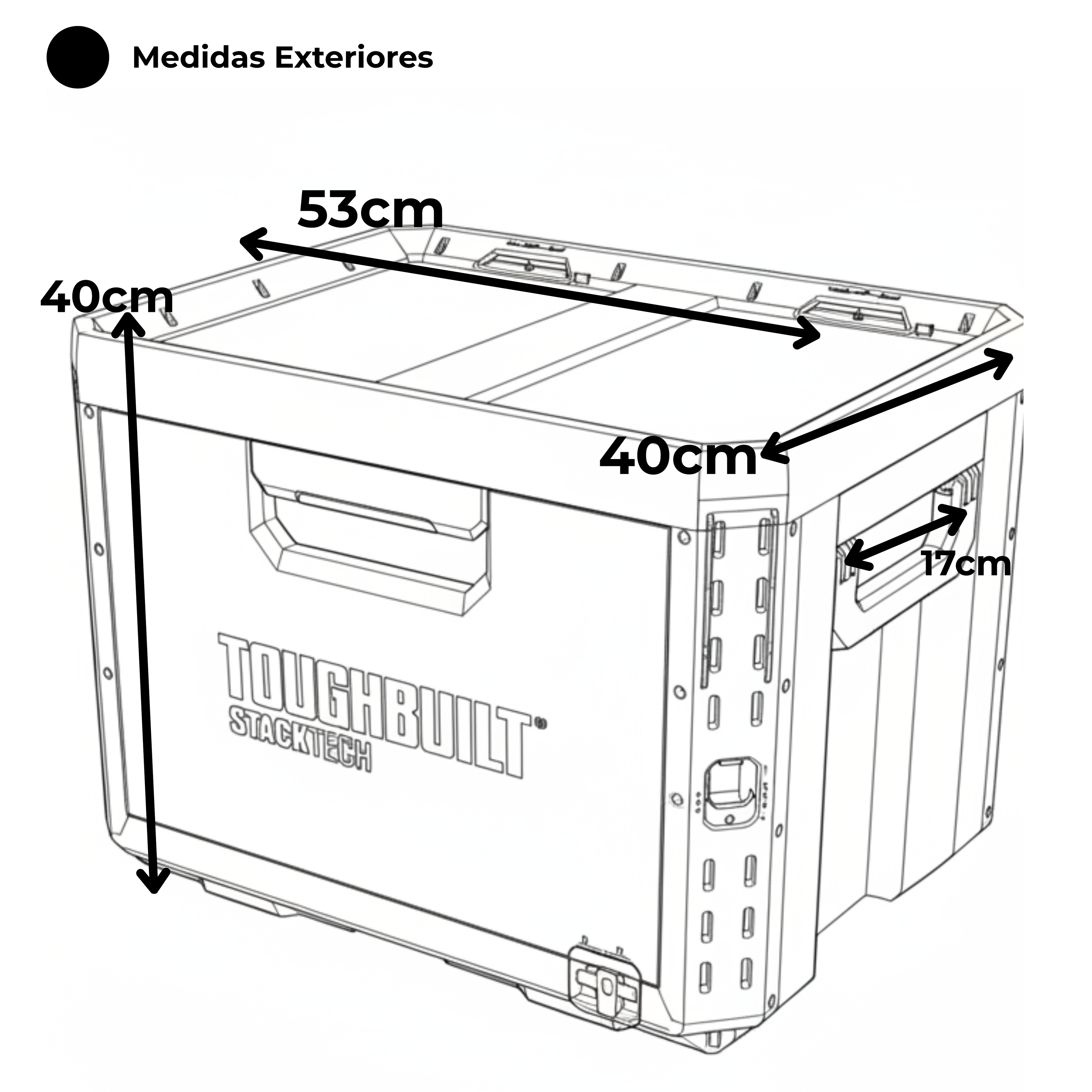 - Medidas Exteriores: 53 cm (ancho) x 40 cm (profundo) x 40 cm (alto)