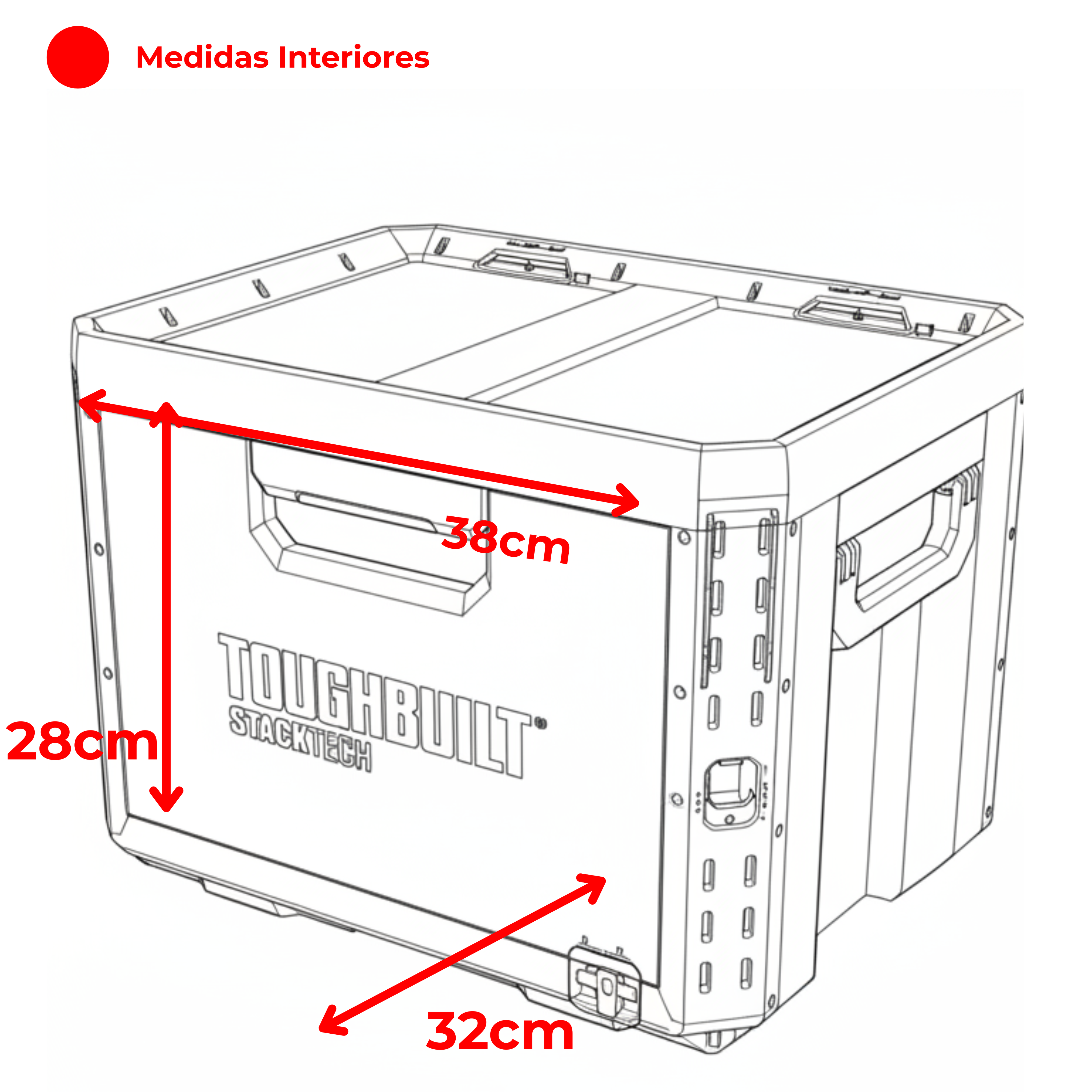 - Medidas interiores 37 cm (ancho) x 32 cm (profundo) x 28 cm (alto)